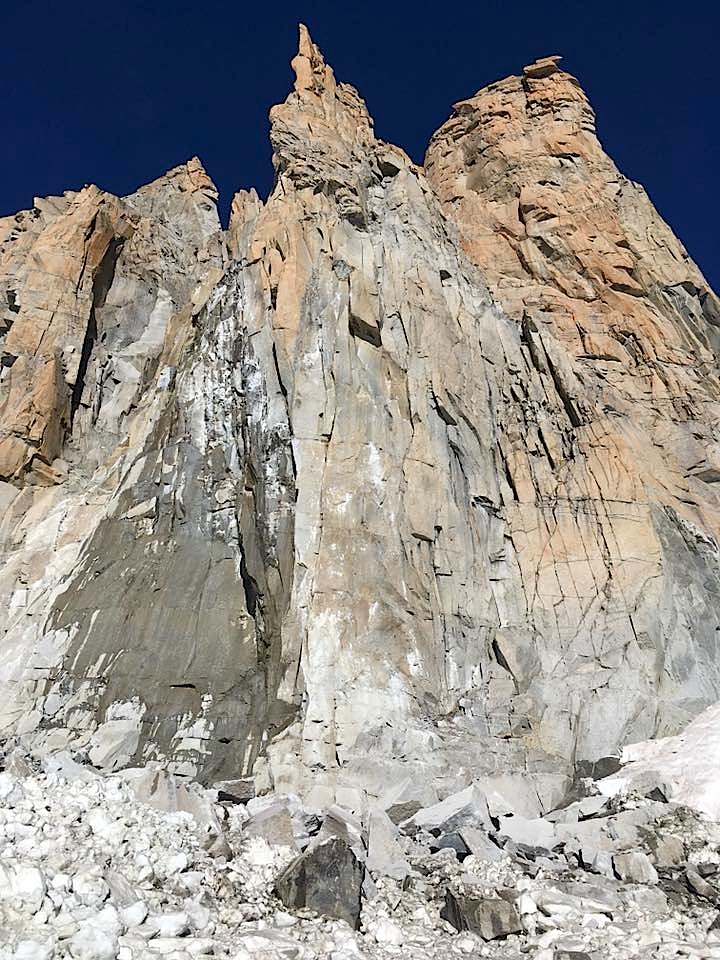 Les Intouchables (upper part)*. The iconic pitch of the route remains safe after the crash and is climbable followins La Peau et Les Os.