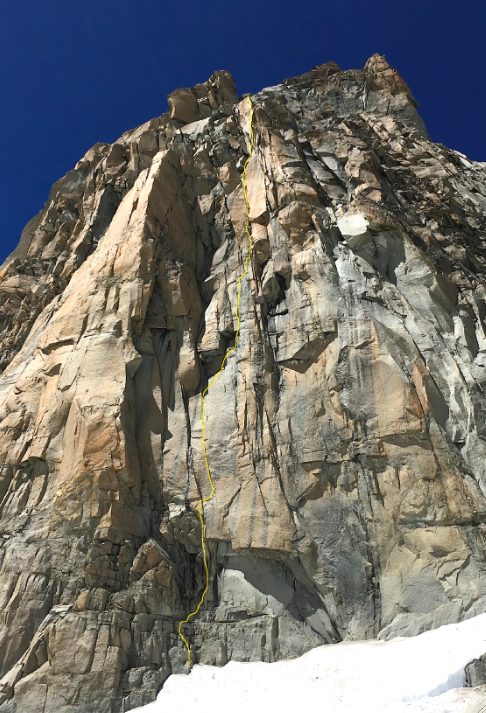 Petit Clocher du Tacul (3682 m). It is a hidden satellite of Mont Blanc du Tacul, between Chandelle and Trident. The south face was climbed first by Perrod and Stuffer in 1967. Their "Z" roof was climbed also by Dudas and Laurent in 2010 climbing Tunnel Surprise, the first modern line with a spectacular slot. In a short time Oviglia and Giorda climbed an indipendent (but 2nd pitch) but parallel route (Stelle e Tempeste). Finally Bassanini and Camurri completed the streight line with the perfect Bridwell Crack.