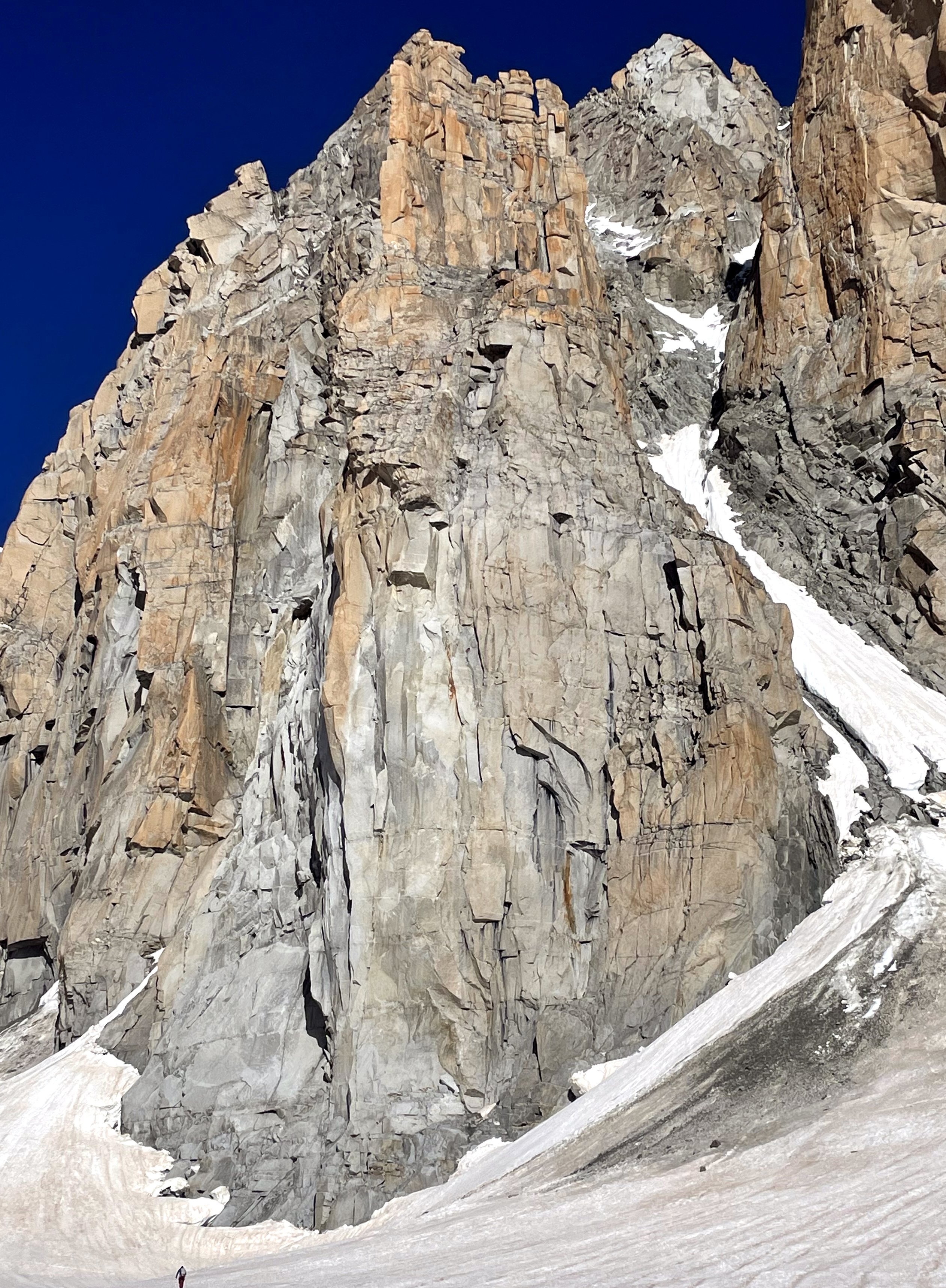 Les Intouchables (upper part)*. The iconic pitch of the route remains safe after the crash and is climbable followins Ethique Croulante.
